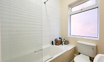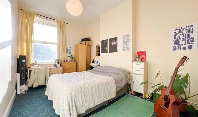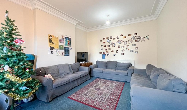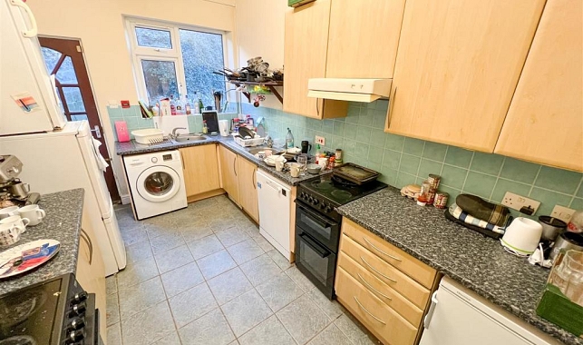 The property features comfortable double bedrooms, three bathrooms, and a large communal kitchen and lounge area, ideal for socialising or relaxing after work.