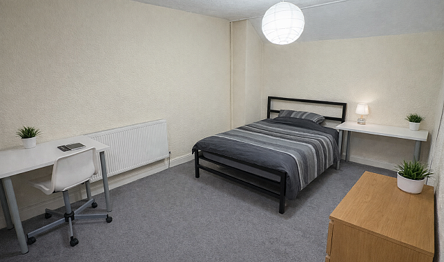 Stylish three-bedroom furnished house perfect for students or sharers. Each room is a generous double, sharing a modern master bathroom. The property features a well-sized garden area and on-street parking, and is fitted out to a high standard with double glazing throughout. With great local facilities nearby and strong transport links, this home strikes a balance of comfort, convenience, and community.