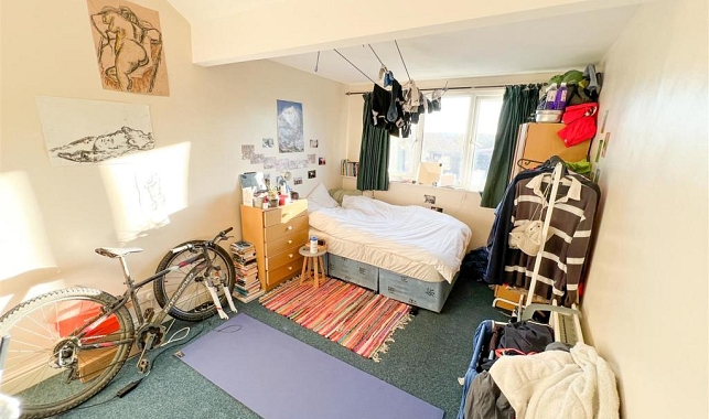 The property features comfortable double bedrooms, three bathrooms, and a large communal kitchen and lounge area, ideal for socialising or relaxing after work.