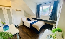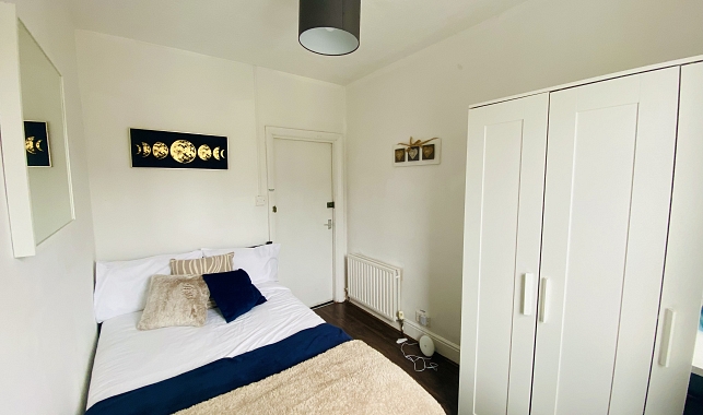 Bright, airy double bedrooms with comfy double or 3/4 beds, chic white furniture, and elegant dark wood floors.